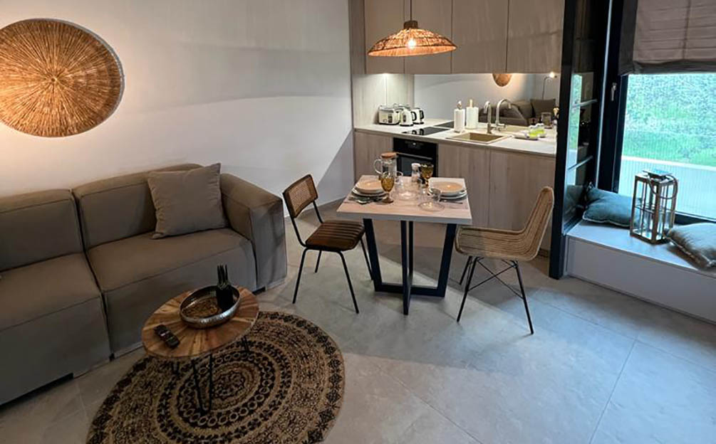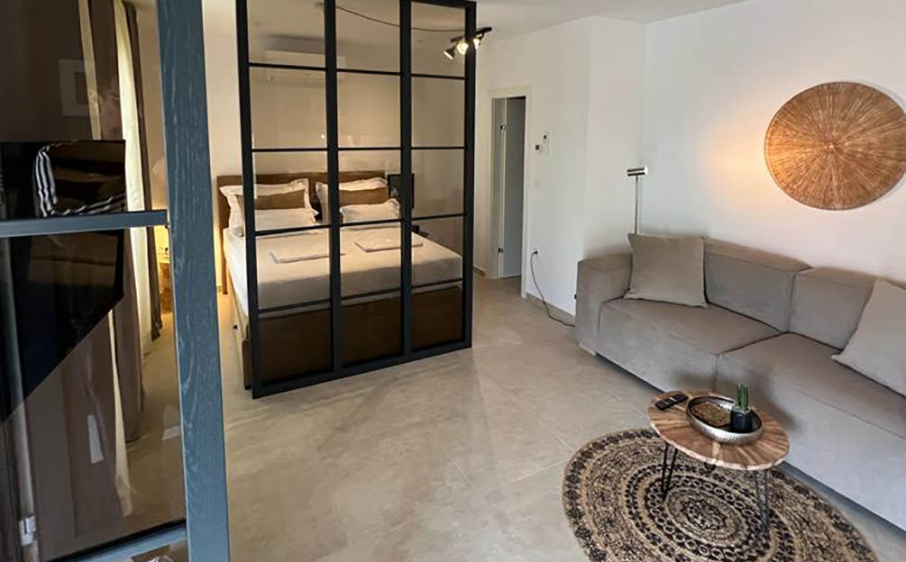 Studio apartman nalazi se u prizemlju zgrade, ima 4 zvjezdice, a sastoji se od jednog većeg prostora površine 45m2 u kojem se nalazi spavaći dio sa bračnim krevetom koji je vizualno odvojen pregradom od kuhinje i prostora za boravak te zasebnog kupatila. U prostoru za boravak smješten je kauč i stol za ručavanje.