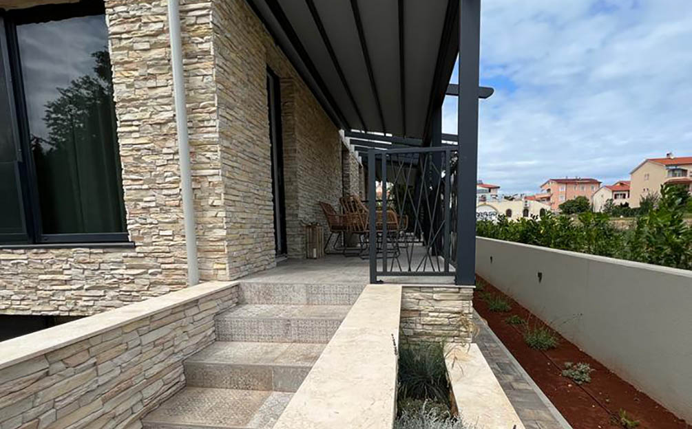 Apartman je smješten u prizemlju zgrade i posjeduje predivnu terasu. Moderno namješten u mediteranskom stilu.